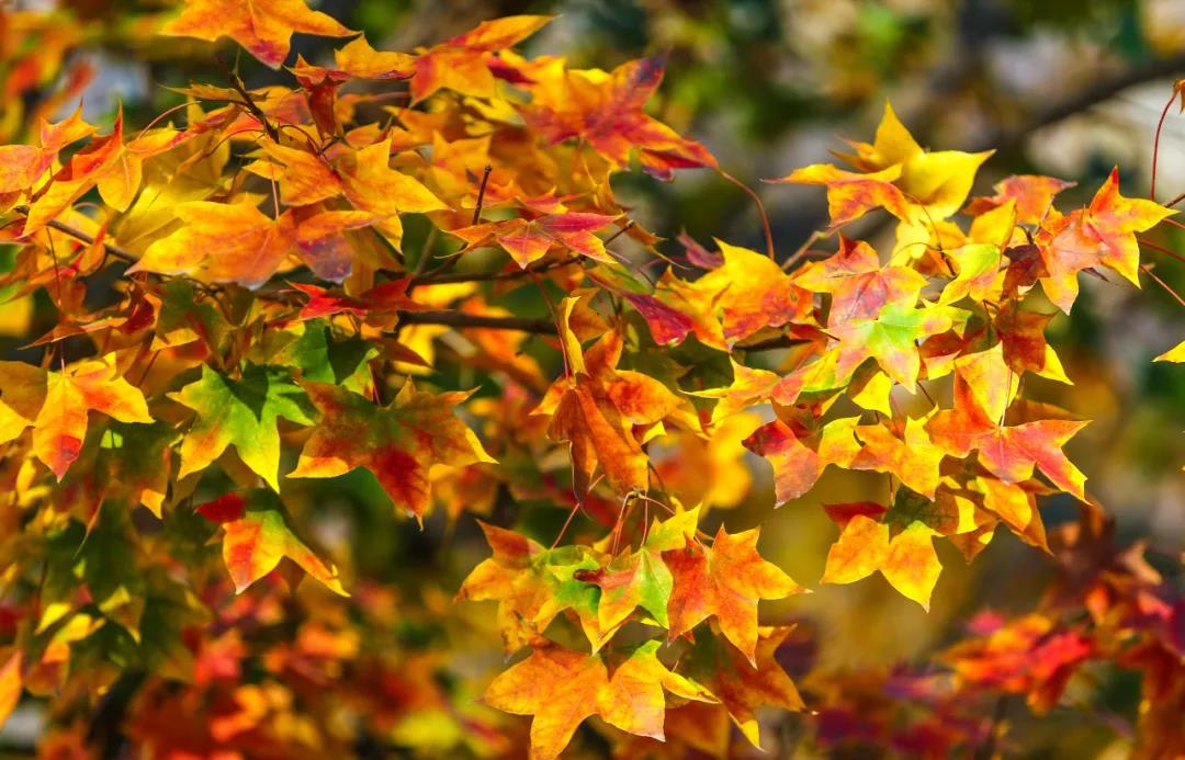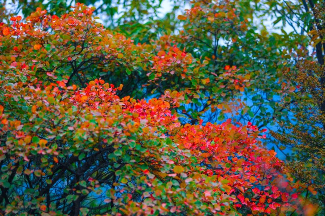 滿樹秋果的橙黃、紅艷,散發(fā)著甜蜜的氣息,楓葉、黃櫨也漸漸染滿山頭,將藍(lán)天、碧蔭和山林,映襯的格外熱鬧。
