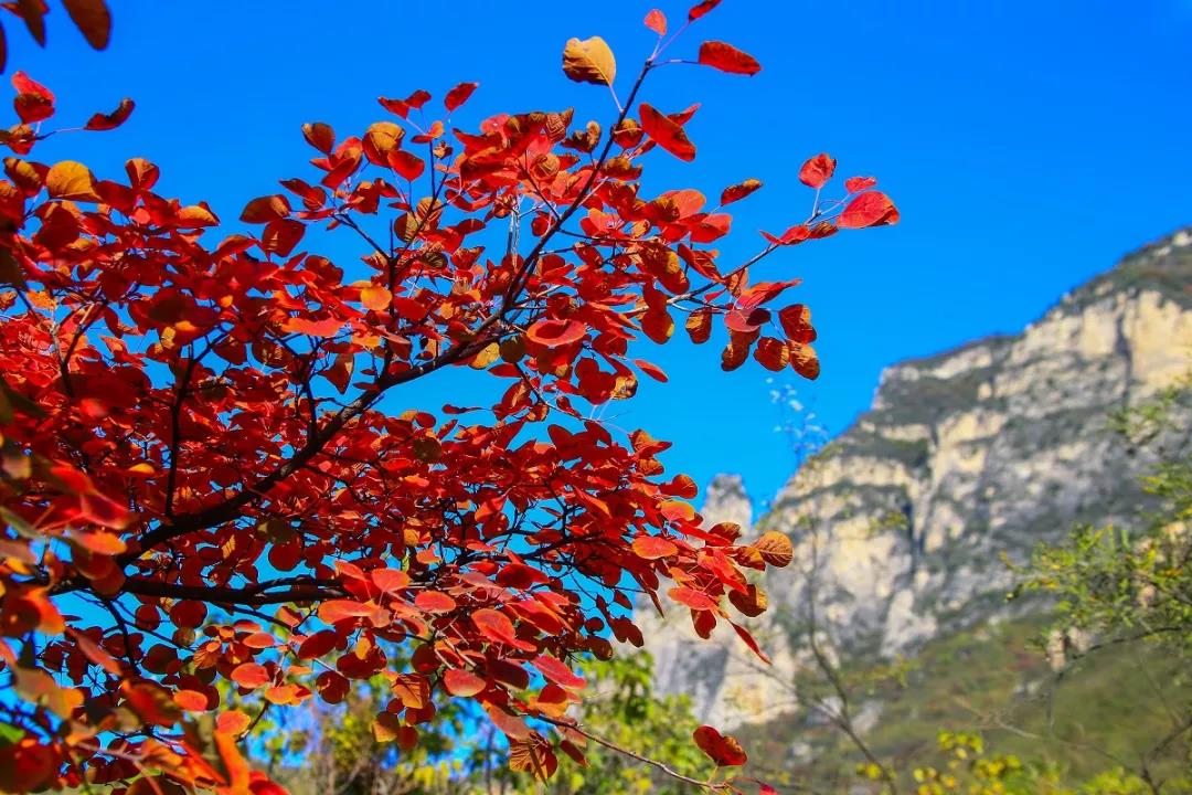 一葉落知秋至,一葉紅秋意濃。秋果成熟,秋葉漸紅,云臺山漸漸退去綠意,換上紅衣,艷麗多姿,明媚動人。