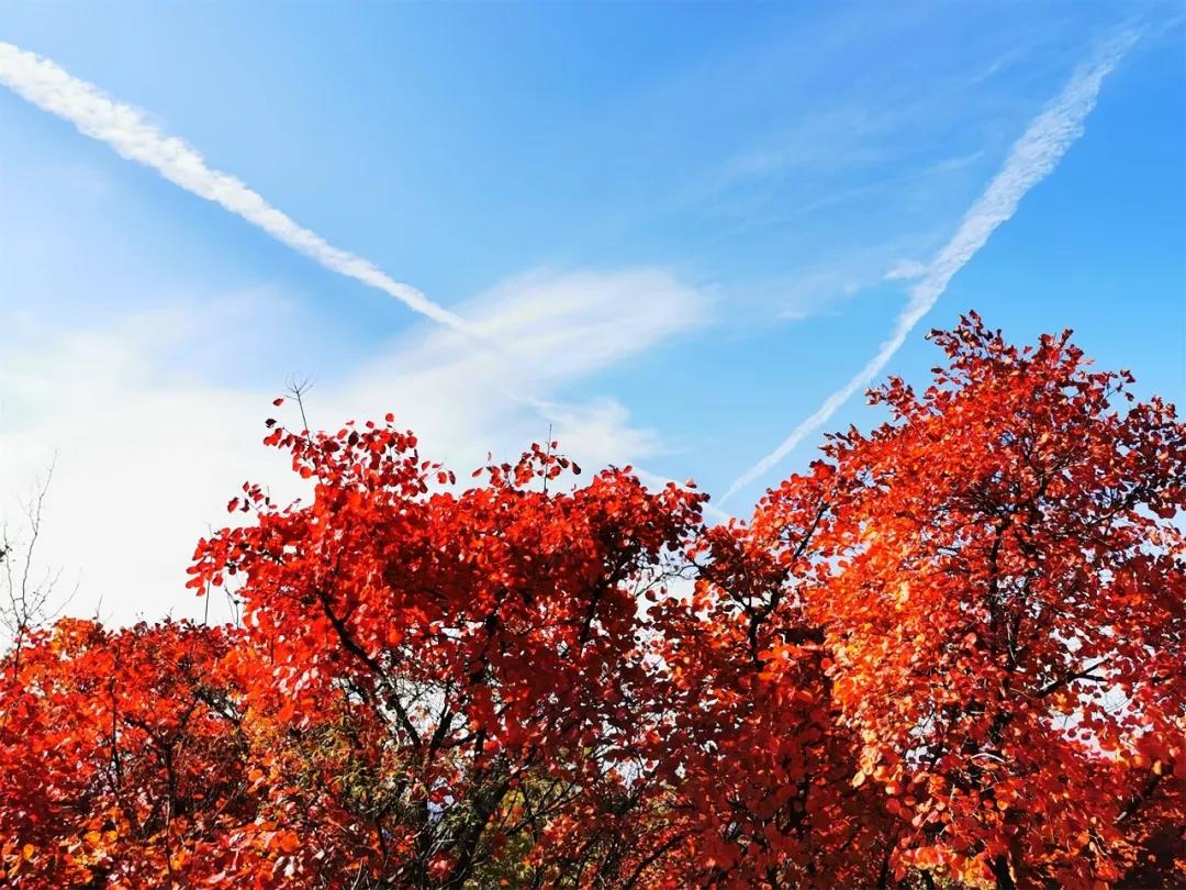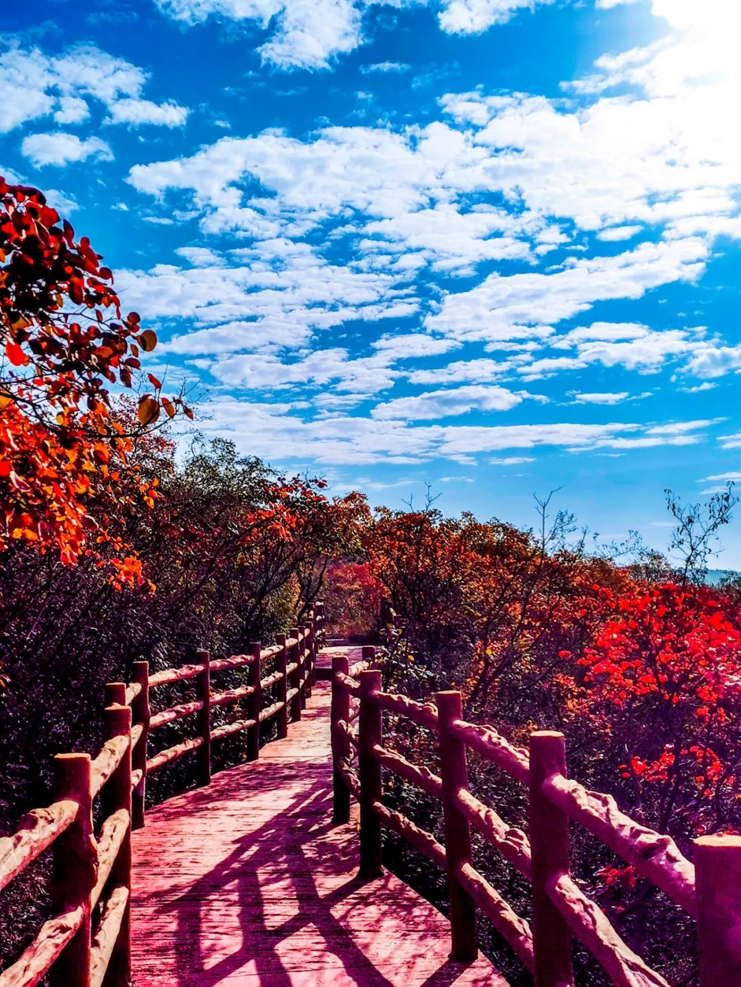 萬畝紅葉婀娜多姿,紅的鮮活,黃的亮眼,映紅藍(lán)天,蔚為壯觀,屬于秋天的美麗被發(fā)揮到了極致,自成一幅嫵媚的秋日美景畫,美得令人挪不開眼。