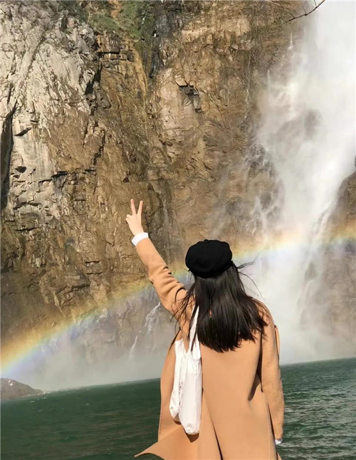 迎面吹來的山風(fēng)讓人神清氣爽,遠(yuǎn)遠(yuǎn)地就聽到瀑布嘩啦啦的水聲,也隱隱約約看見了一條似銀白色的飄帶掛在山腰。近了,更近了,“嘩啦啦”的響聲越來越大,抬眼仰望,真可謂“飛流直下三千尺,疑是銀河落九天”。