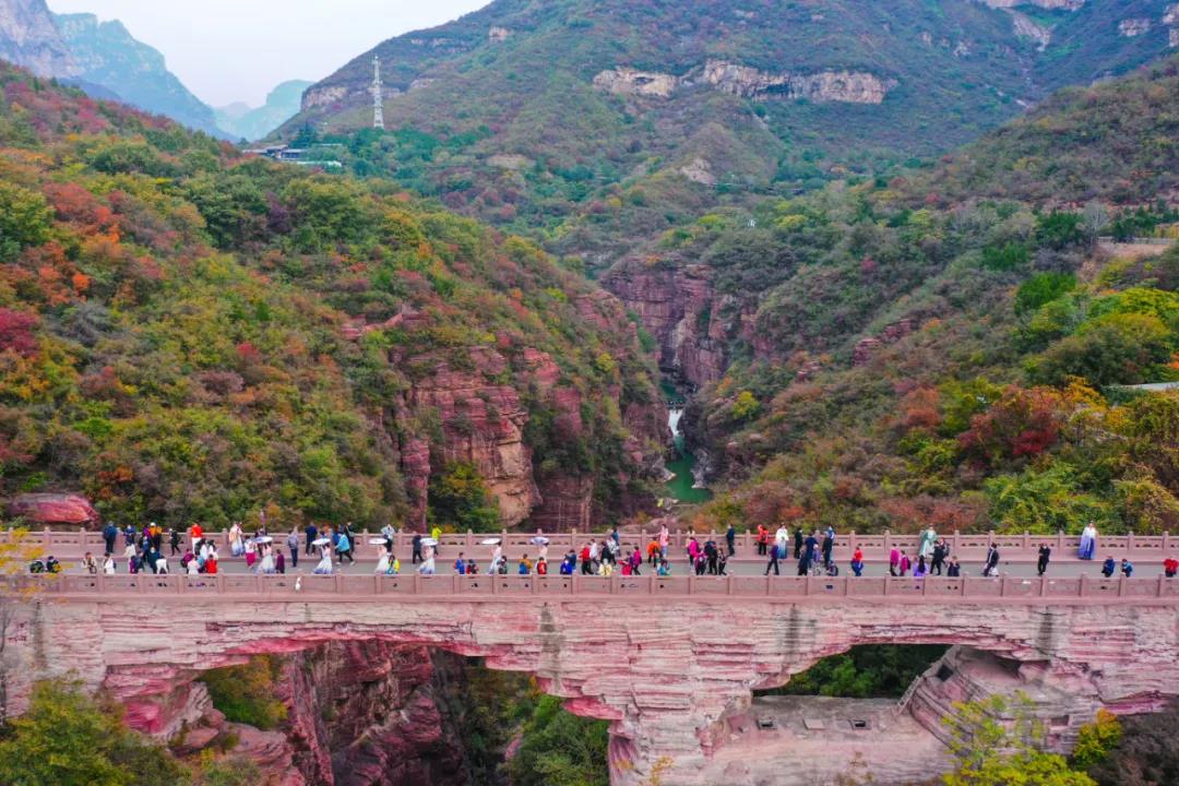 晴天暖陽(yáng),顏值爆表!“云臺(tái)藍(lán)”遇上萬畝紅葉扮靚山巒,紅葉彩林、國(guó)風(fēng)演藝、山泉奔涌,萬千游客暢游云臺(tái),盡享紅葉勝景。