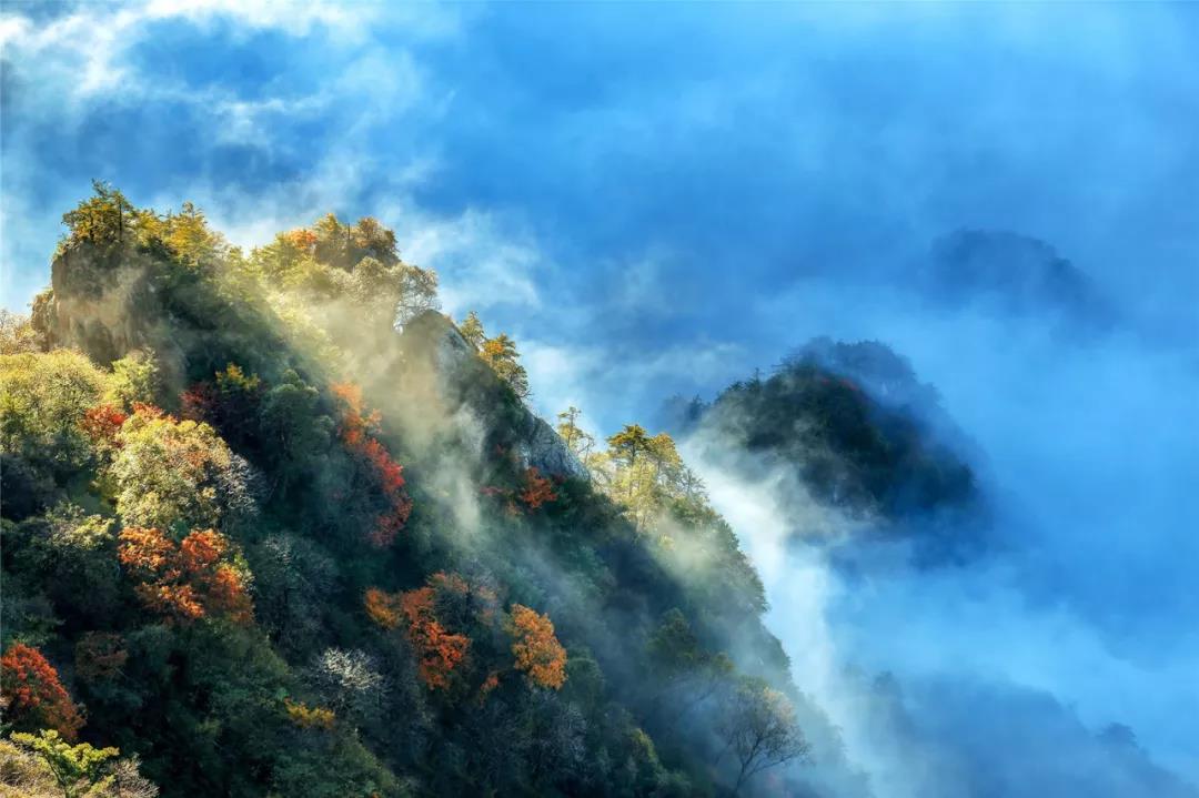 連晴不知夏去,一雨方知秋深。幾場秋雨把五彩的秋天,送到了美麗的老君山。