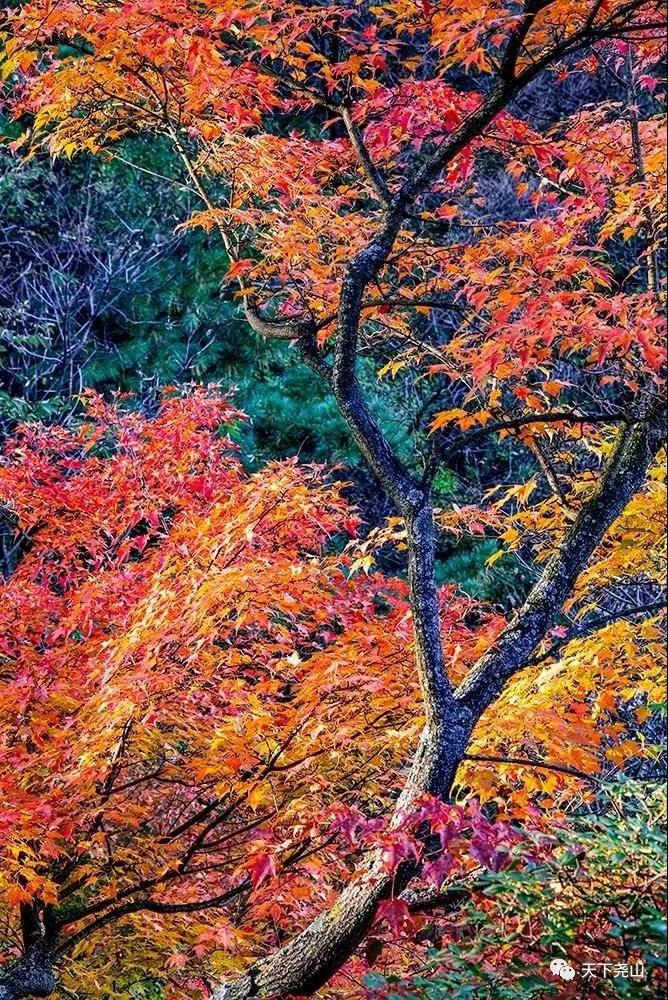 飛珠之聲,似是李白酒后的吟詠;濺玉之音,仿若墨子授徒的教誨。在這條溪澗中,三瀑九潭清靈,灑脫,奔放。雖不是滿谷紅林,可紅黃綠漸變鋪陳,似五彩飛蝶迎面而來(lái),斑駁樹(shù)影,也繾綣動(dòng)人。
