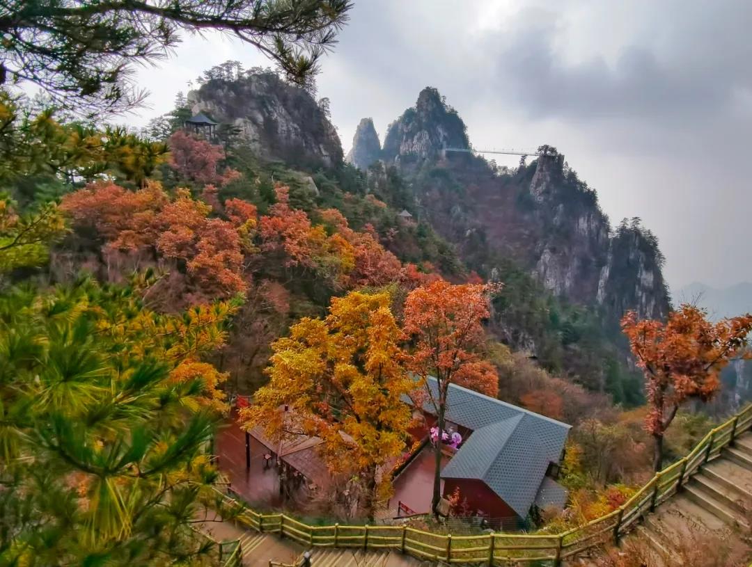 成片的紅楓、黃櫨、奇松豐富的植被成就了老界嶺多彩秋色。