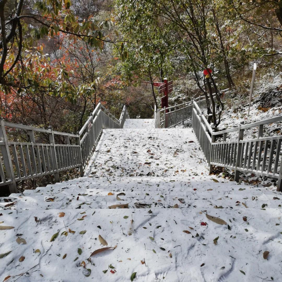 九峰山的秋天并未完全消盡,初雪便迎著立冬踩著厚厚的落葉,伴隨著紛亂的微寒,隆重的登場(chǎng)了。