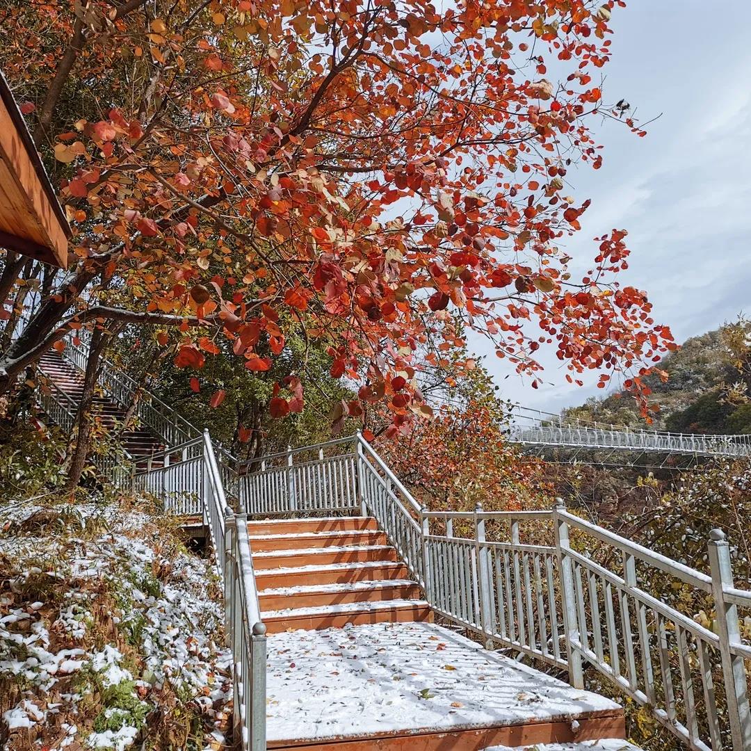 在冷空氣強(qiáng)勢(shì)來臨下,今年的初雪要比往年更早一些。山上的紅葉還未完全退落,枝頭的黃櫨仍然保持著秋日的色彩。