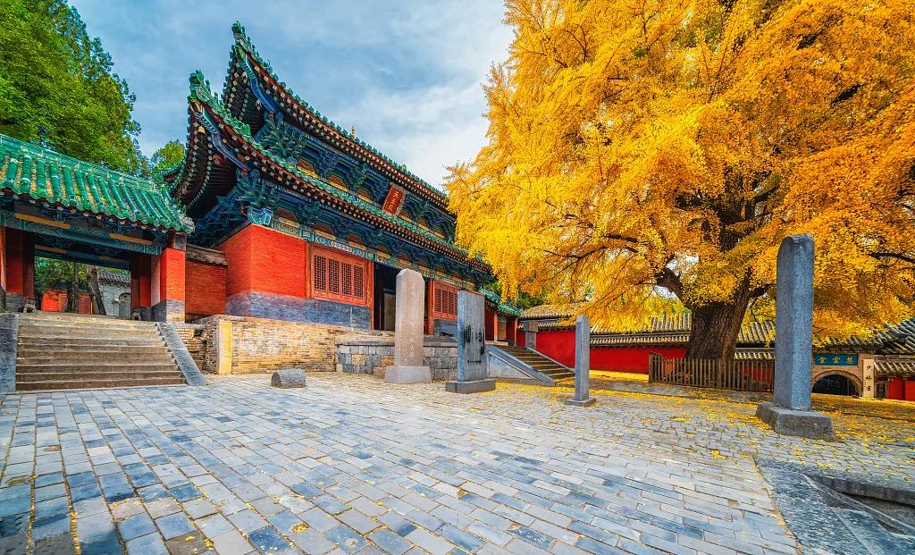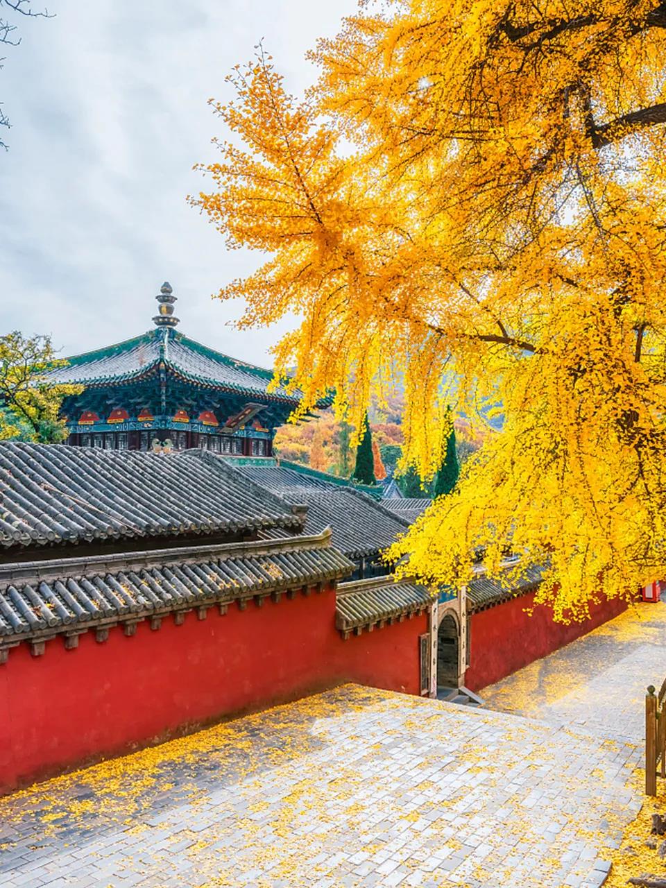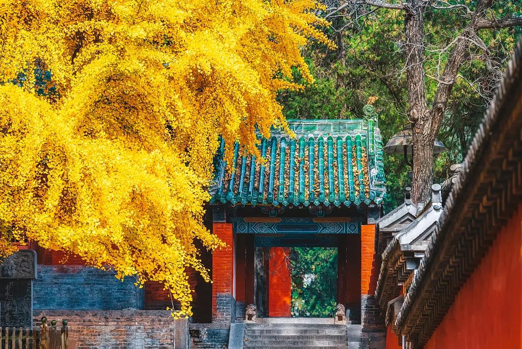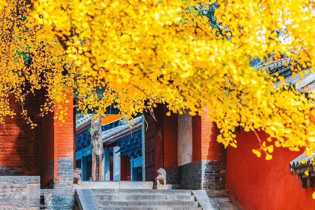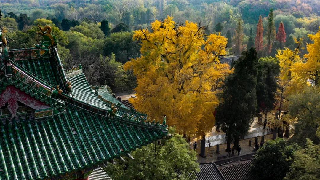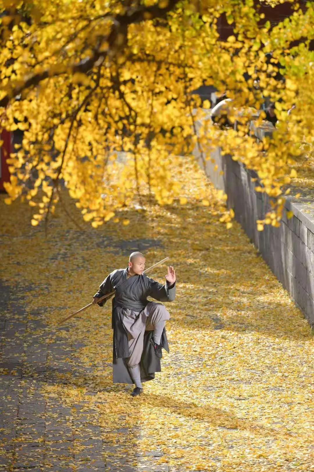 銀杏樹是目前世界上最古老的樹種之一,它不但有很高的藥用價(jià)值,也有較高的觀賞價(jià)值。隨風(fēng)飛舞的扇形銀杏葉如金色蝴蝶,零落飄散在甬道和蓮階之上,與僧人、古樸的寺廟建筑相得益彰,令禪宗祖庭少林寺禪意愈濃。