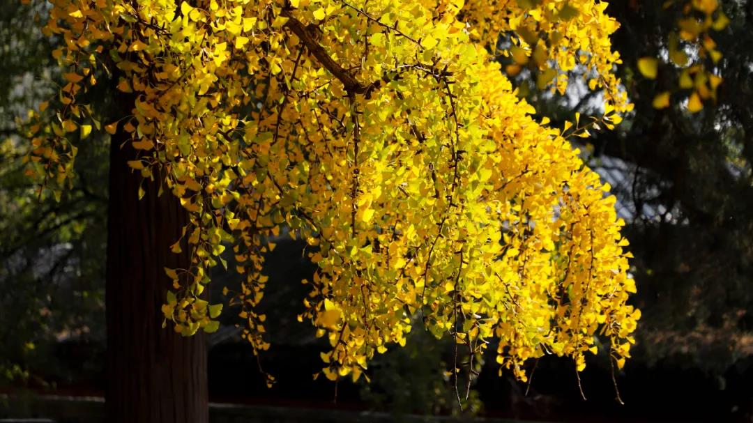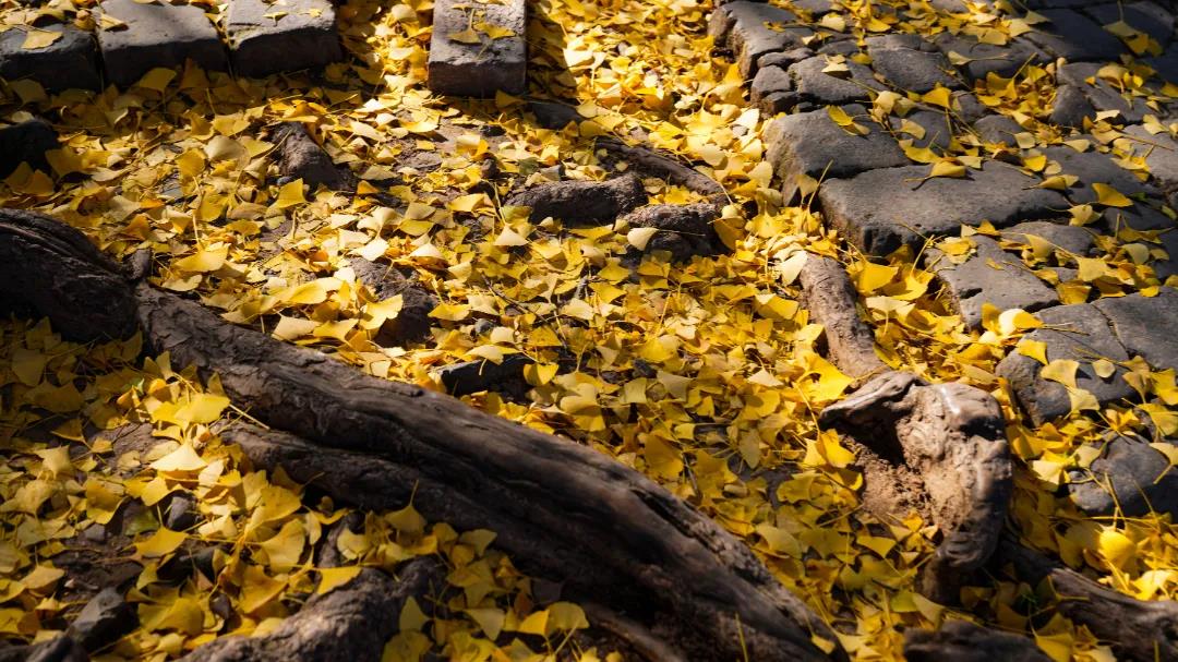 逢寺必栽銀杏樹,銀杏樹樹干高大,其葉素雅潔凈,秋冬之際金色的銀杏葉鋪滿寺院,襯托出寺院的莊重肅穆。金黃落葉與僧衣融為一體,創(chuàng)造出超脫塵世的空靈。銀杏樹作為佛門圣樹,有著植物界“活化石”的美譽(yù),生長(zhǎng)慢、壽命長(zhǎng)的特質(zhì)使銀杏樹本身就自帶光環(huán),充滿靈性。