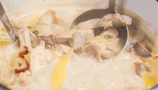 鮮美的雞湯加入鍋底