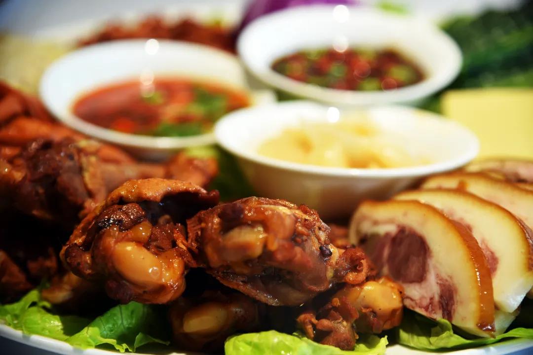 鹵水什錦是家庭朋友,喝酒聚會必點菜品,鴨腿、鴨胗、黃瓜、洋蔥,鹵味與蔬菜的完美結(jié)合,再蘸上秘制小料,葷素搭配,千張餅一卷。香而不膩,老少皆宜。