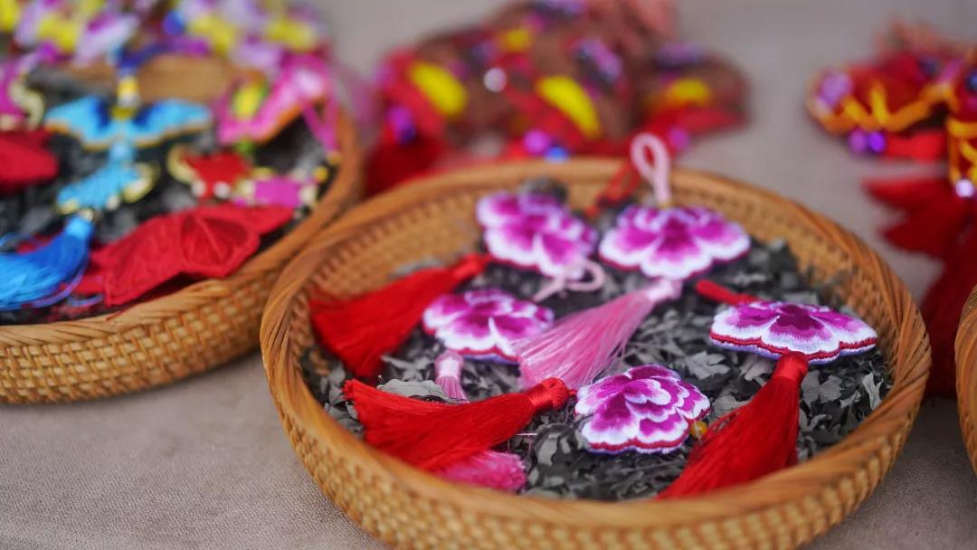 而此時,趙海亮的故鄉(xiāng)竹林鎮(zhèn)也飛速發(fā)展著,在故鄉(xiāng)的邀請下,他把公司的經營放到了竹林鎮(zhèn)。于是,在竹林鎮(zhèn)風情古鎮(zhèn)主巷的一側出現(xiàn)了這么一間上下兩層、古色古香的香包店,迎接著四方來客。