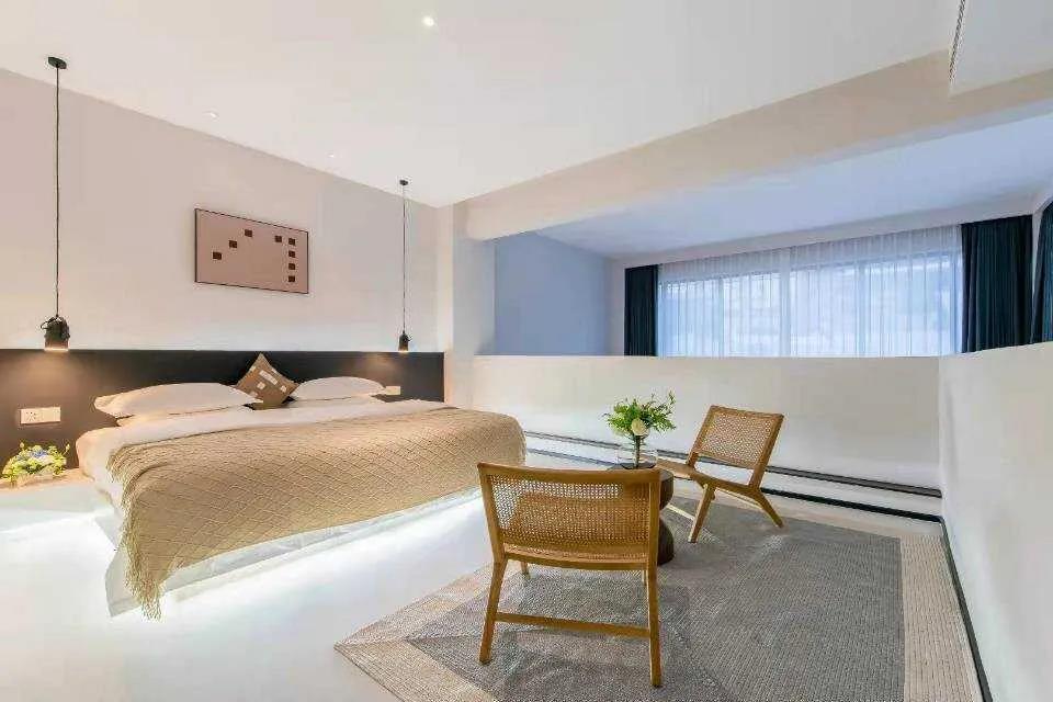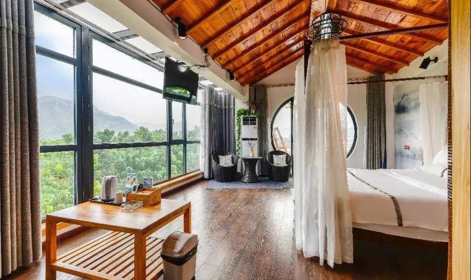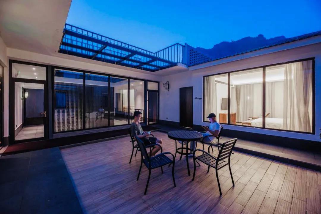 每個房間都各有特色,或是觀景條窗,或是后山庭院,或是懸挑陽臺,或是挑高躍層。樸素而高雅,平淡而詩意。