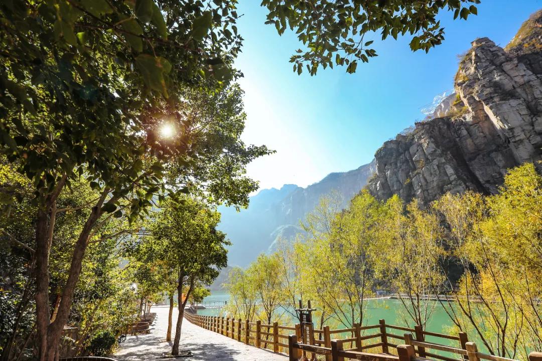 陽(yáng)光灑滿山川大地將山脈、水流、花草、景致