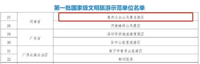 云臺山景區(qū)榜上有名!