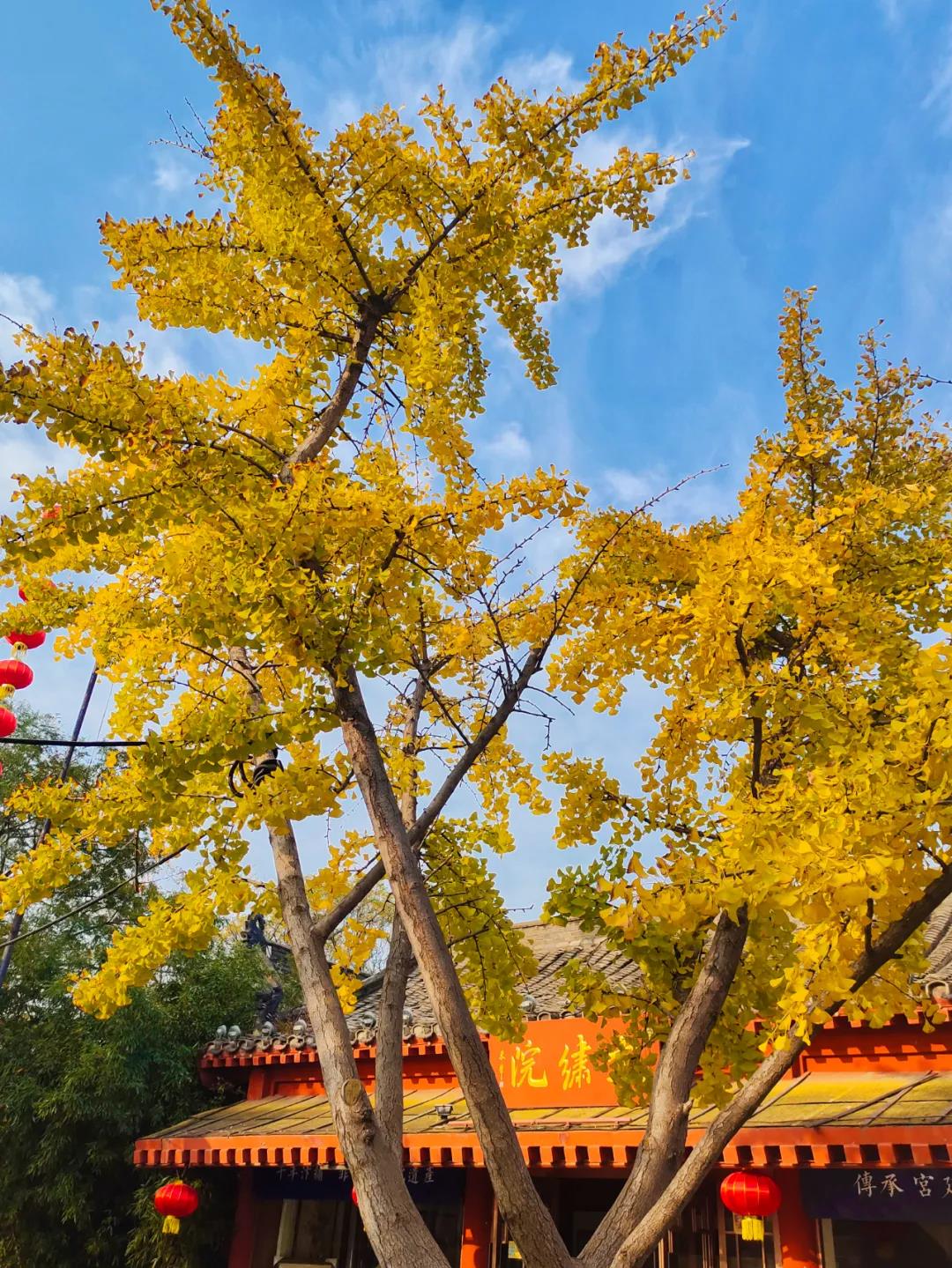 熹微的光影從錯(cuò)落的金色銀杏樹中灑下,