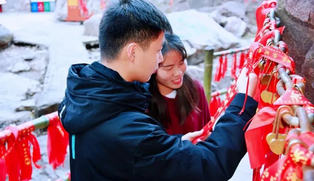 跨過月老亭,來到許愿樹,一起虔誠地祈求未來幸福的相伴,將象征兩人緣分的月老紅繩系得更緊。