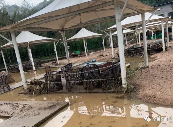 第二天,雨小了,水勢減弱。他看著曾經(jīng)寬敞的村道瀝青路面已被山洪沖得坑坑洼洼,淤積著一堆堆亂石雜草,心中五味雜陳。到了靜水山居,更是讓他心頭一緊。雖有心理準(zhǔn)備來面對這狼藉場面,但真正站在這里,他還是忍不住落淚。