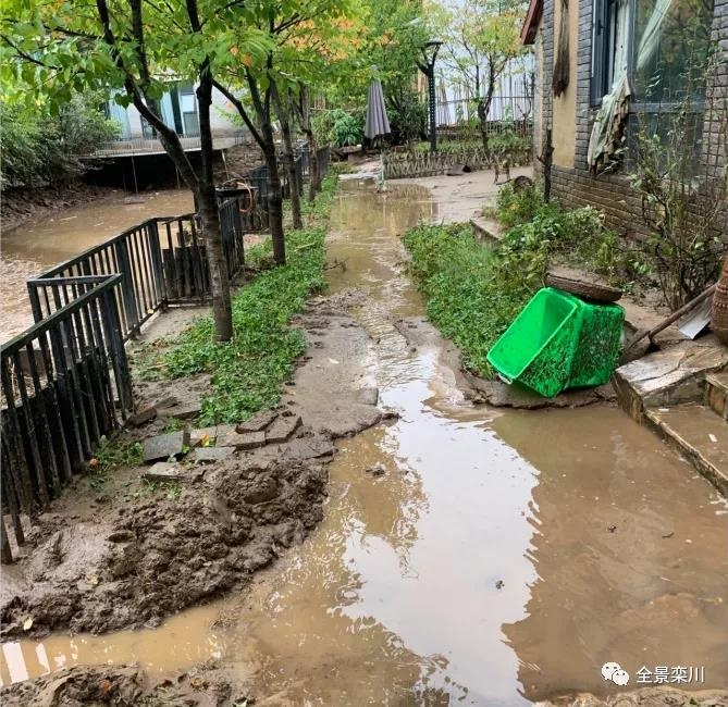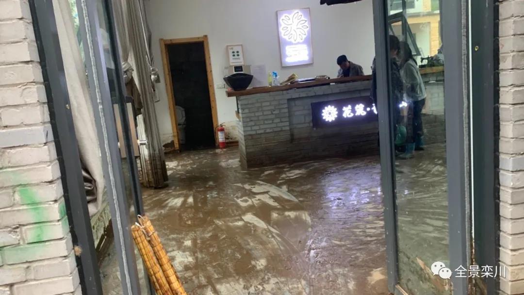 陶灣鎮(zhèn)協(xié)心村的靜水山居,正好坐落于穿村而過那條伊河支流的彎道處。大雨已連續(xù)下了好幾天,四周山坡的雨水匯聚成條條溪流,那晚的暴雨奔騰而下,靜水山居主人王彥閣望著道路、院子、廚房、客房、小橋被山洪卷來的泥石浸泡,心中的無奈讓他眉頭緊鎖,強忍淚水拼盡全力卻怎么也拔不出深陷泥渦的雙腳。