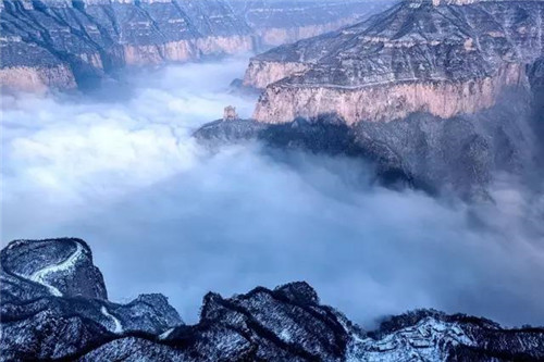 仿佛像坐在一個四面環(huán)海的孤島上,看不清楚哪里有路,只有南太行遠(yuǎn)方那些穿破云海的峰頂,和你默默相望。