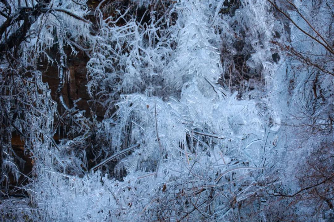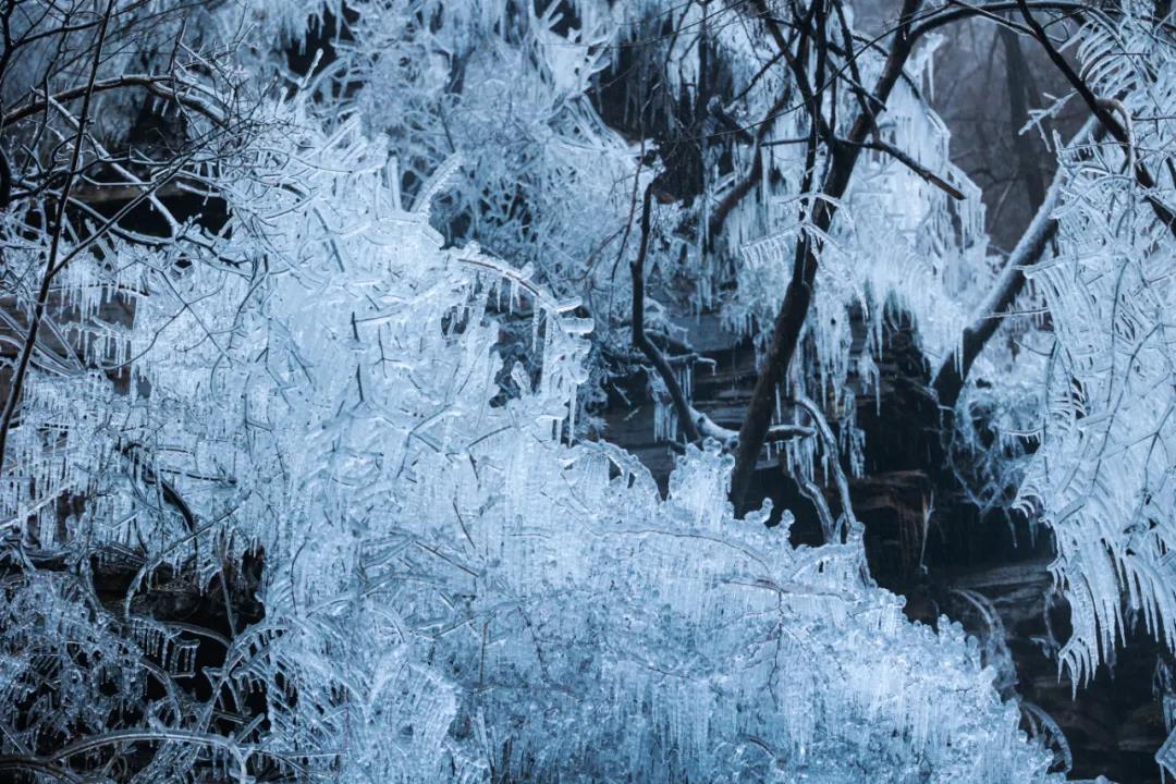 夏日里泉水叮咚的山谷,此刻似乎施展了神奇的魔法,冰掛、冰瀑奇景初現(xiàn),晶瑩剔透,宛如凝脂,又如和田玉般,溫潤(rùn)無(wú)瑕。