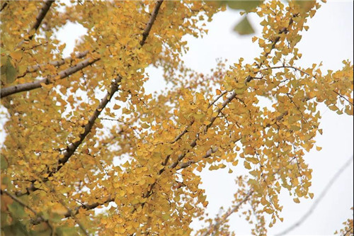 銀杏樹徹底變得金黃,扇形可愛的葉子,任君采擷。