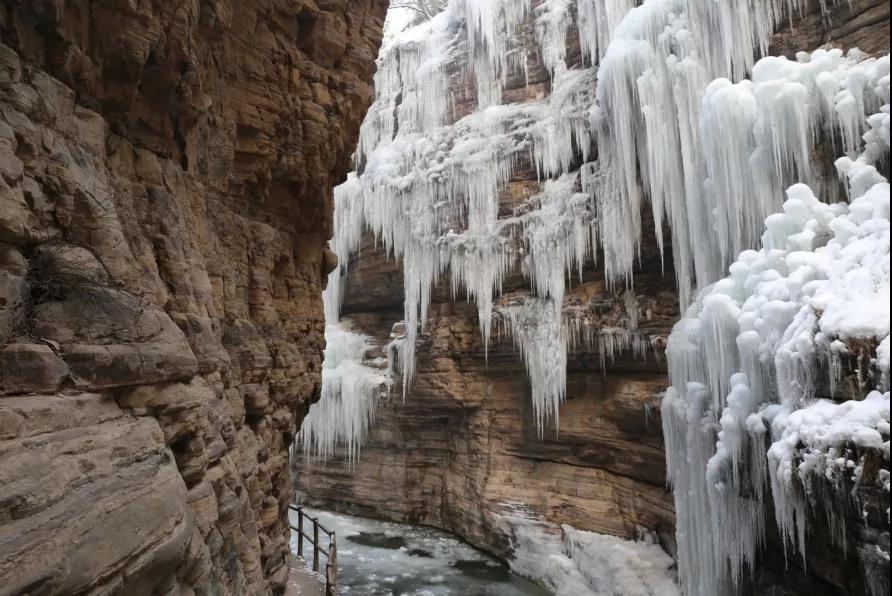 進(jìn)入12月中旬,太行大峽谷的溪流、飛瀑、草叢等景觀或凝固成冰,或被冰雪所覆蓋,幻化成白色的“童話仙境”,引人入勝!