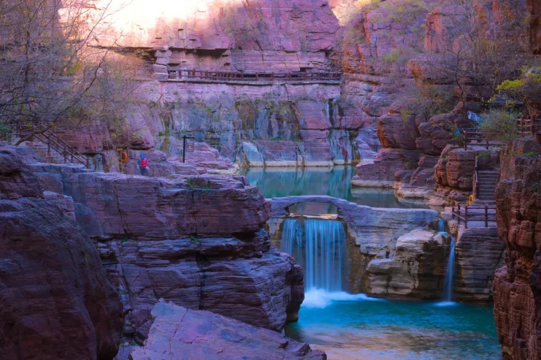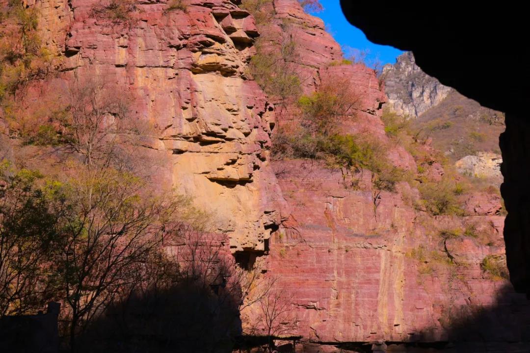 暖陽給紅石峽添上柔光濾鏡,紫紅的崖壁愈發(fā)明艷瑰綺。