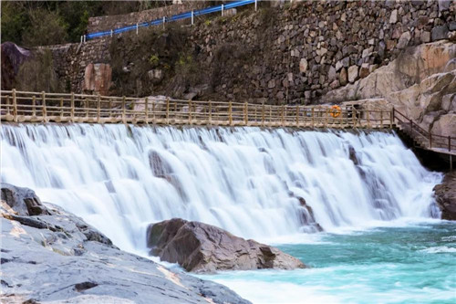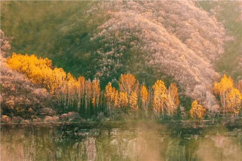 從天空俯瞰,山與水縈繞,融為一體,渾然天成。漫步在河壩林蔭小道,寧靜而溫馨。