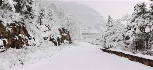 山間的路覆一層細(xì)雪,如同一條蜿蜒的游龍嬉戲在這壯美天地,漫步其間,猶如進(jìn)入童話世界一般。