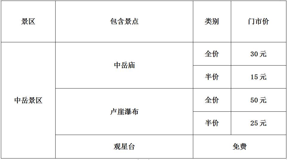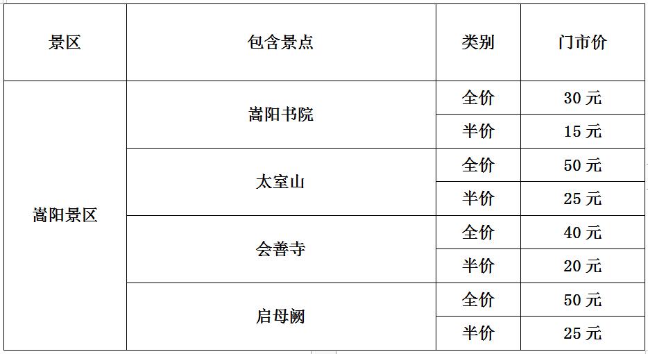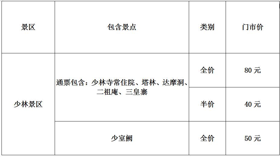 目前嵩山景區(qū)開放區(qū)域有:少林景區(qū):少林寺常住院、塔林、摩洞、二祖庵、三皇寨、少室闕(達摩洞、三皇寨開放時間為2022年1月1日);嵩陽景區(qū):嵩陽書院、會善寺、啟母闕;中岳景區(qū):中岳廟、觀星臺、盧崖瀑布等景點開放。初祖庵、法王寺、嵩岳寺塔、永泰寺景點暫不開放。各景點全價票價格如下: