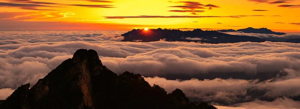 站在山頂眺望,云海在腳下翻騰,放眼望去,一個紅點從云層中出現(xiàn),漸漸演成半圓,映紅半邊天,流光溢彩,從黑暗到光明,從低處到高處,豈不是對2022年最好的一場迎接儀式。