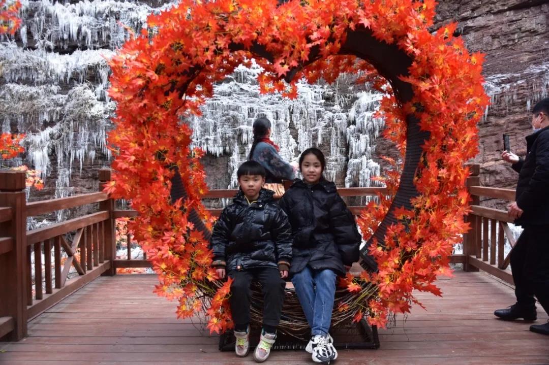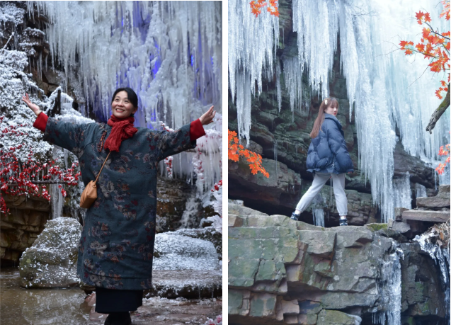 擋不住游人走進(jìn)九峰山打卡冰掛的熱情