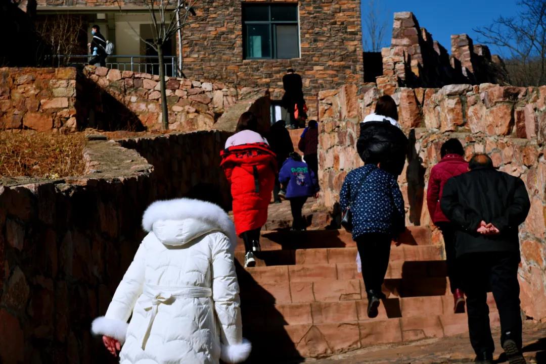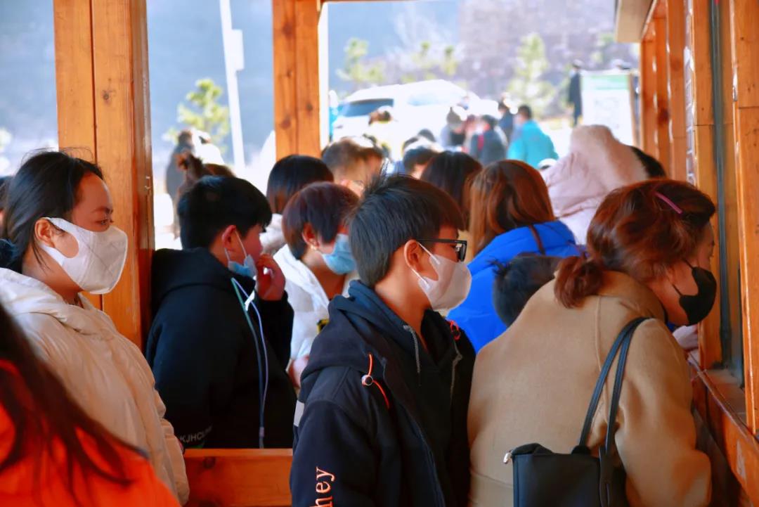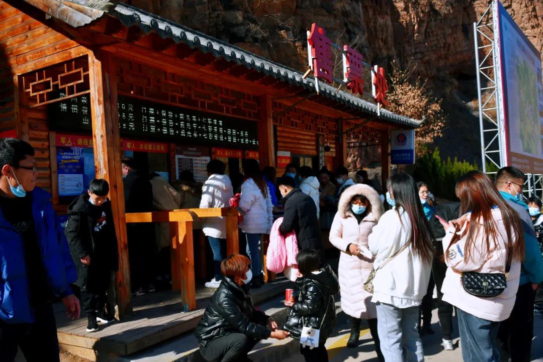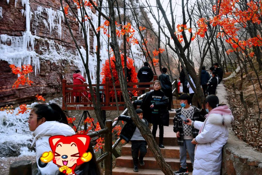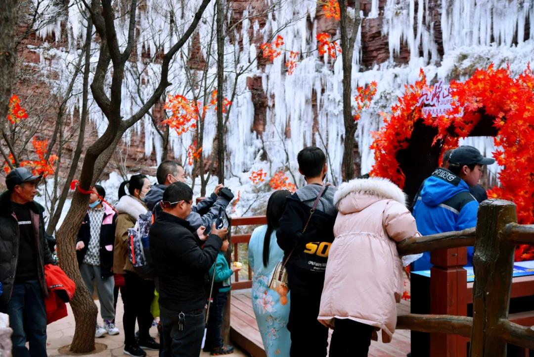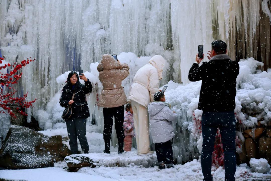 最火的當(dāng)屬虎逃澗冰掛,紅梅映襯下的冰掛,雪花緩緩飄落,絕色“冰宮”擠滿了拍照打卡的游客朋友。