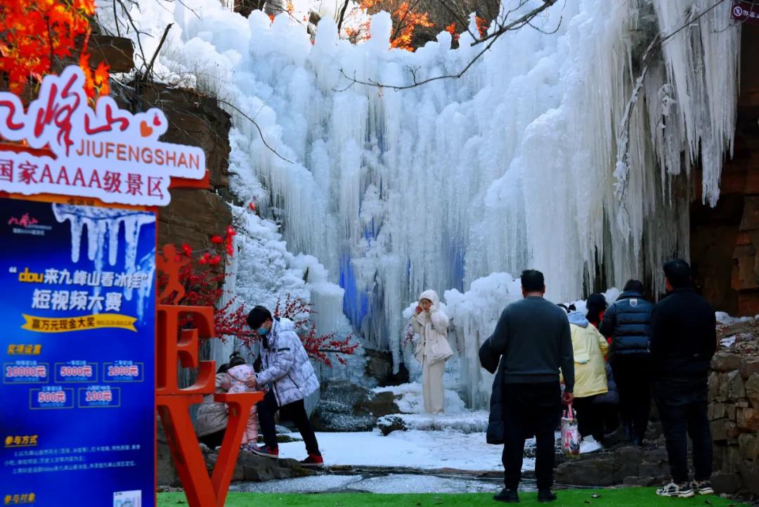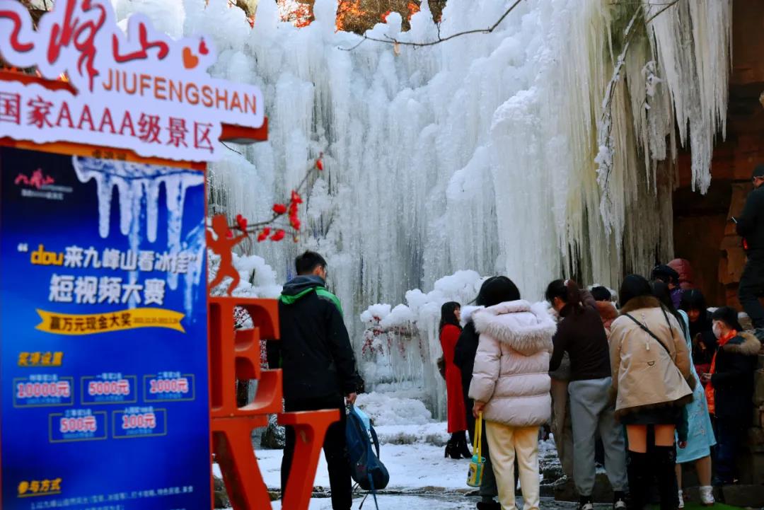新年第一天,人們都沉浸在跨年的喜悅之中,九峰山景區(qū)迎來(lái)了2022年首批游客。元旦假期適逢是九峰山景區(qū)第三屆冰掛節(jié)剛剛開始,絕色冰掛吸引了大批前來(lái)欣賞的客人。