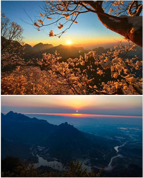 來到新鄉(xiāng)南太行,一定要耐心等待一次日出日落,既可欣賞到余暉映溪流之景,又可看到日照金山之美。
