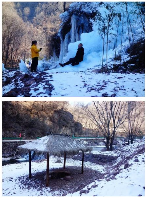 小溝背的冬日是靜謐的,沒(méi)有泉水叮咚,沒(méi)有鳥(niǎo)叫蟬鳴,只有冰與水,山與水構(gòu)成的晶瑩仙境!