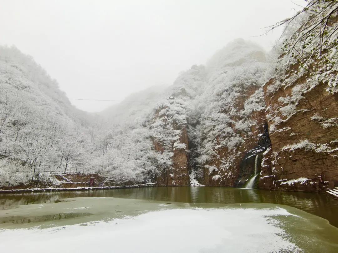 “晨起開門雪滿山,雪晴云淡日光寒。” 細(xì)雪降臨,龍?zhí)洞髰{谷一片瓊白,都說瑞雪兆豐年,翩翩白雪背后是無限期盼,更是一個(gè)充滿詩意與浪漫的世界。