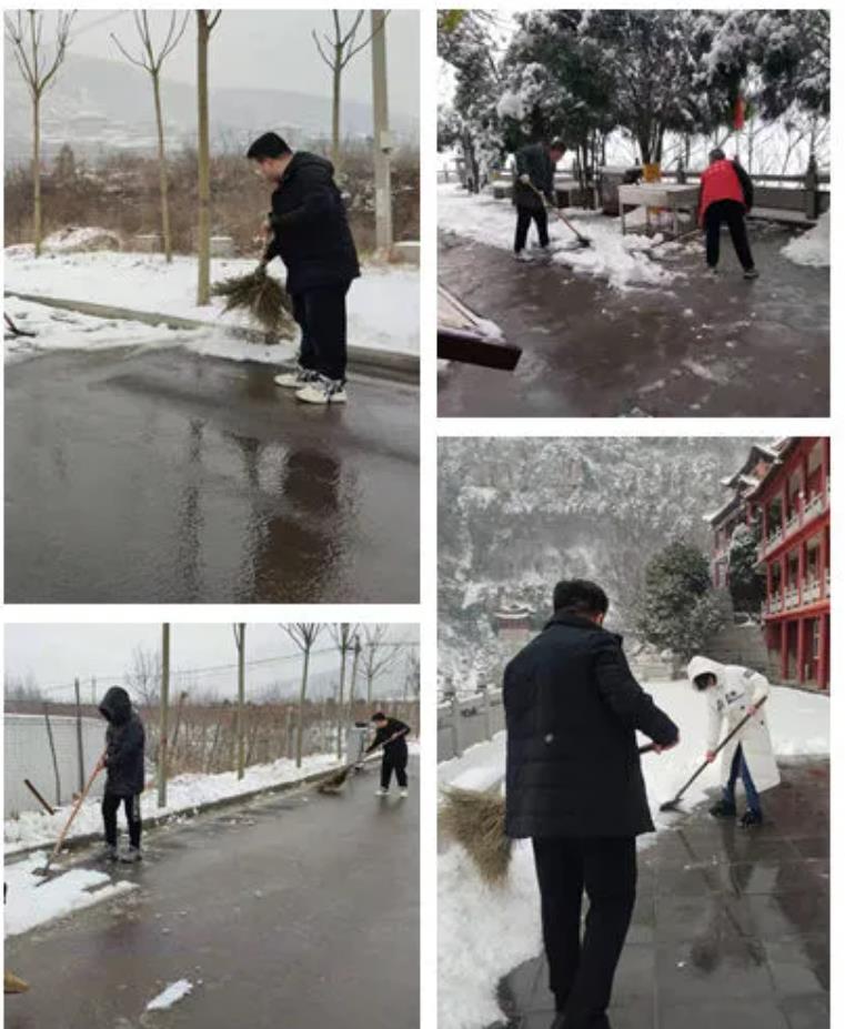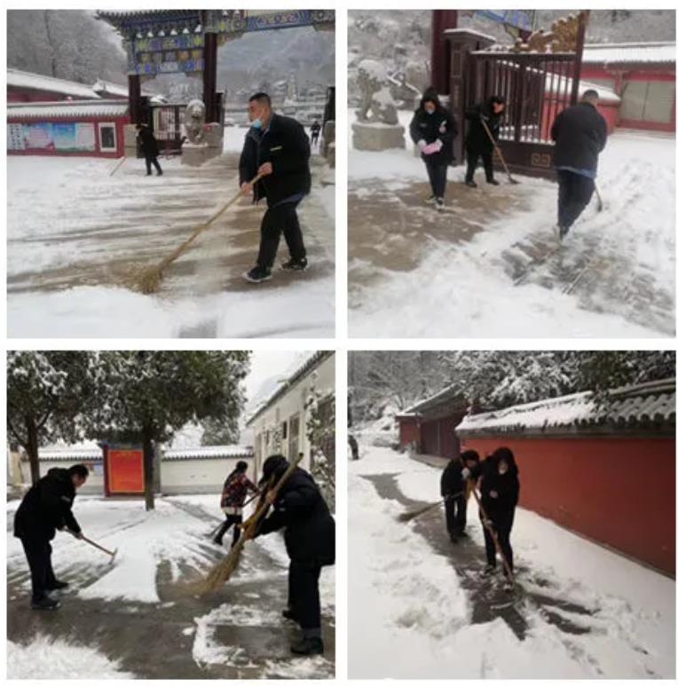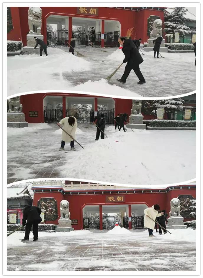 1月22日,雪姑娘的悄然而至,把朝歌大地裝扮得美麗多姿。一夜之間,淇縣各A級(jí)景區(qū)凝雪掛霜、銀裝素裹,呈現(xiàn)出一片銀裝素裹的美景。同時(shí),也給城市的正常運(yùn)行和市民生活出行帶來不便,為積極應(yīng)對(duì)雨雪冰凍天氣,保障市民安全暢通出行,淇縣文廣旅局干部職工全員出動(dòng)、迅速組成志愿服務(wù)隊(duì)走上街頭、防疫卡點(diǎn),走進(jìn)景區(qū),浴“雪”奮戰(zhàn),開展掃雪除冰活動(dòng)。