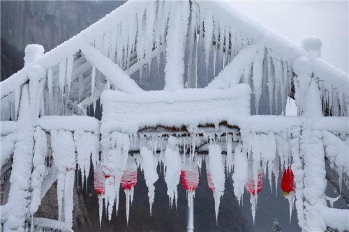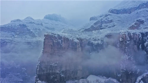 冰層覆蓋的峽谷和云霧繚繞的天空,讓一切變得朦朧起來,拼湊出一幅幅若隱若現(xiàn)的水墨圖畫。