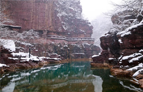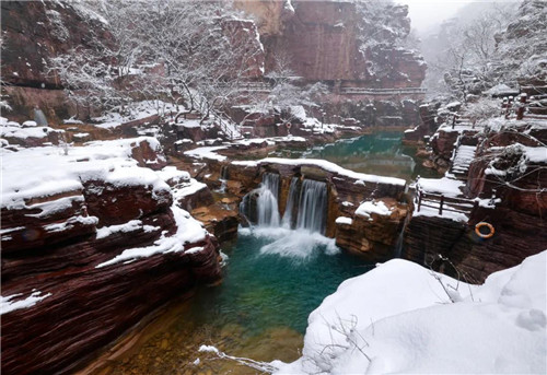 年將至,此刻云臺山 呈現(xiàn)一派北國風(fēng)光景象 ,雪后的紅石峽紅白綠交相輝映,更是美得讓人心醉。