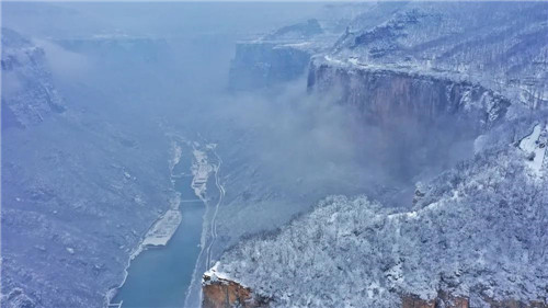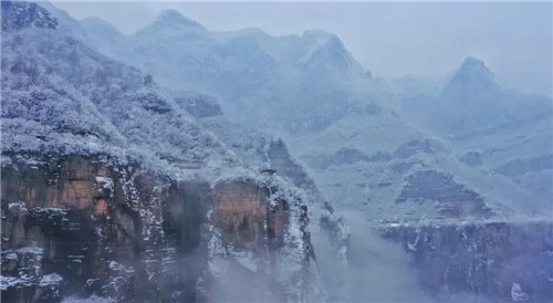 大雪下降,云海溢起,寶泉的云海氣勢磅礴,雄奇壯美,酣暢淋漓的大筆一揮而就,演繹出冬日浩瀚縹緲的玄虛意境。