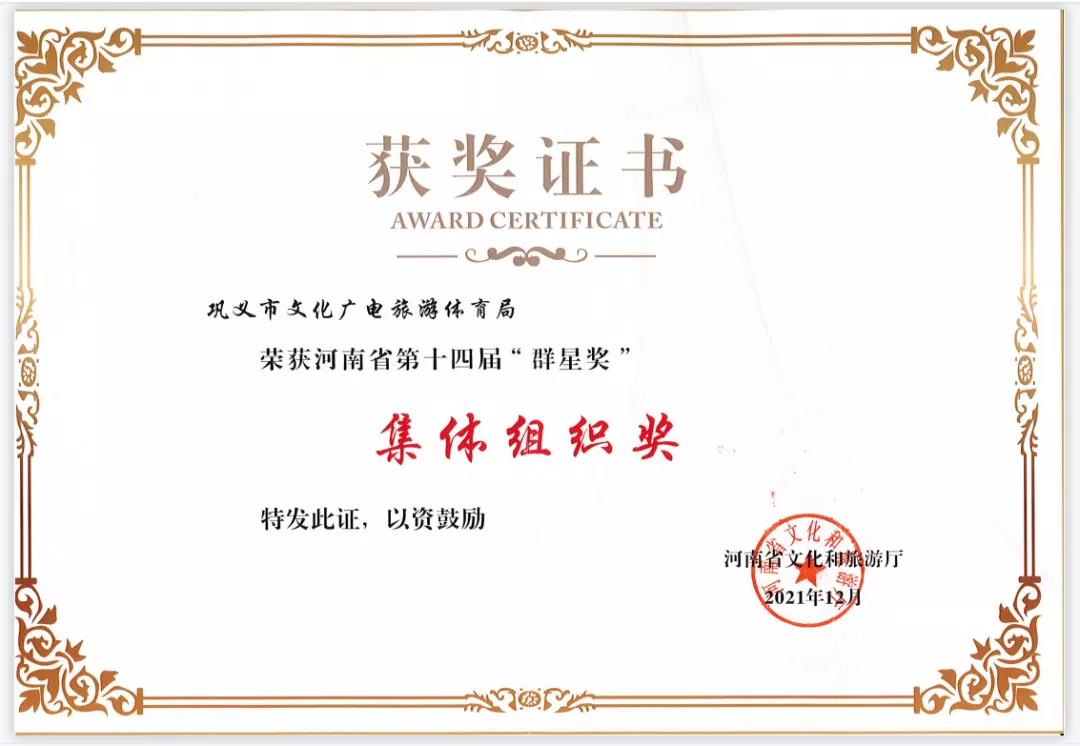 組織優(yōu)秀文藝團隊,參加河南省書法美術、音樂舞蹈、小戲小品等慶祝建黨100周年系列賽事活動,取得了1個一等獎、5個二等獎和5個三等獎的好成績,文廣旅體局榮獲集體組織獎榮譽稱號。