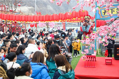 有餃子吃,有節(jié)目看,財神客串主持人,語言詼諧幽默,逗得游客哈哈大笑;雜技頂缸、四川變臉實力滿滿,舞龍舞獅精彩紛呈,女團小姐姐活力四射,你還敢說寶泉來了沒什么好看的嗎?