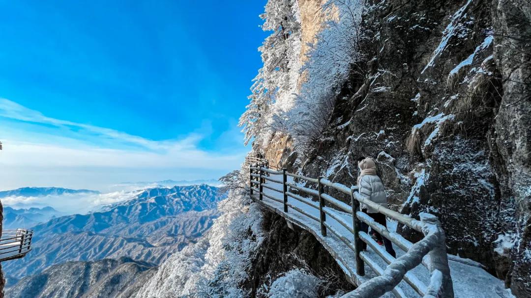 剛剛想要春暖花開的老君山,伴隨著立春后的一場(chǎng)雪,再次穿上冬裝。