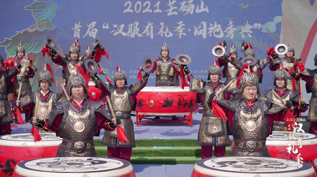振奮人心的戰(zhàn)鼓,為前來芒碭山的游客開啟美好幸福年,在鼓聲隆隆中喚醒千年的漢朝記憶?瓷泶╂z甲的武士組成,在“令旗”的指揮下,擊打扁鼓,敲擊大镲、馬鑼,再現(xiàn)了古代戰(zhàn)爭(zhēng)前夕鼓聲隆隆下的豪情壯志,極具感染力。