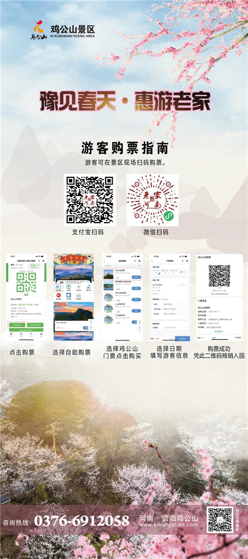現(xiàn)場掃碼→點擊購票→選擇自助購票→選擇雞公山門票點擊購買→選擇日期,填寫游客信息→購票成功,憑二維碼核銷入園。外省游客需要出示48小時內(nèi)核酸檢測陰性證明。(由于疫情形勢多變,防疫政策不定時更新,請以最新發(fā)布政策為準),感謝您的理解與配合!