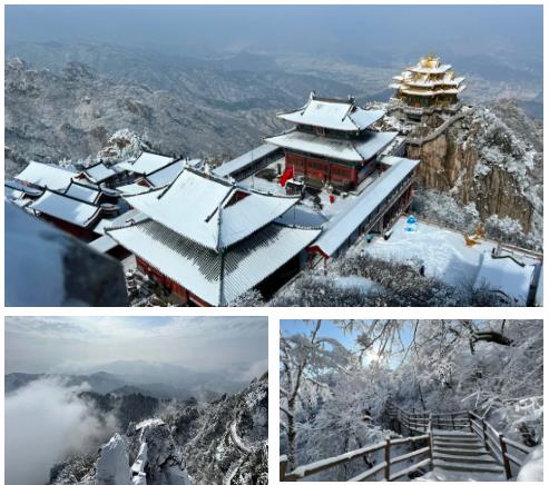 受冷空氣影響,大雪與老君山再一次不期而遇。雪中的老君山銀裝素裹,一片壯麗秀美景色。