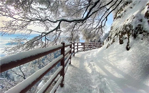 在棧道之間,體現(xiàn)著絕對的寧靜。此刻,白雪厚厚的覆蓋著萬物,空氣清新到極點(diǎn),凈化著人們的心靈。