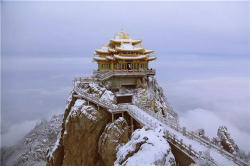 道德府和會仙橋,是拍攝五母金殿風(fēng)光最好的視角之一,此處距離服務(wù)區(qū)最近,日出、云海、雪景等觸手可得,懶人推薦。