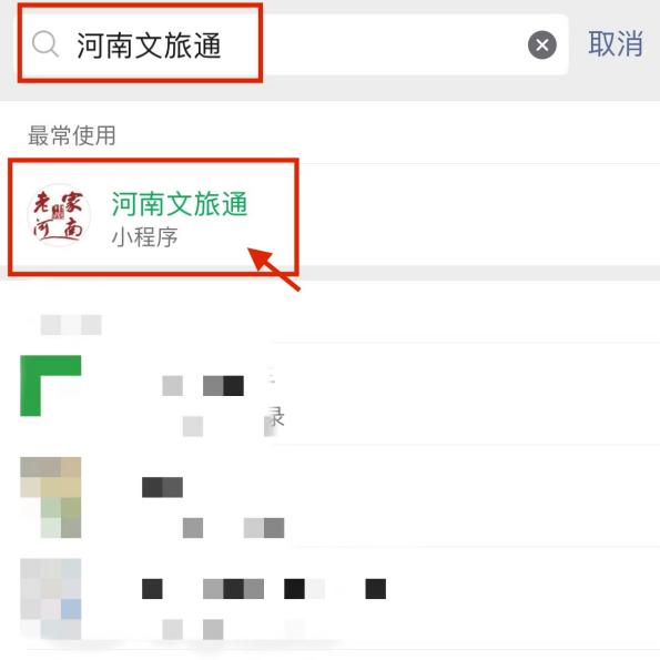1,微信或支付寶搜索“河南文旅通小程序”,點擊進入。